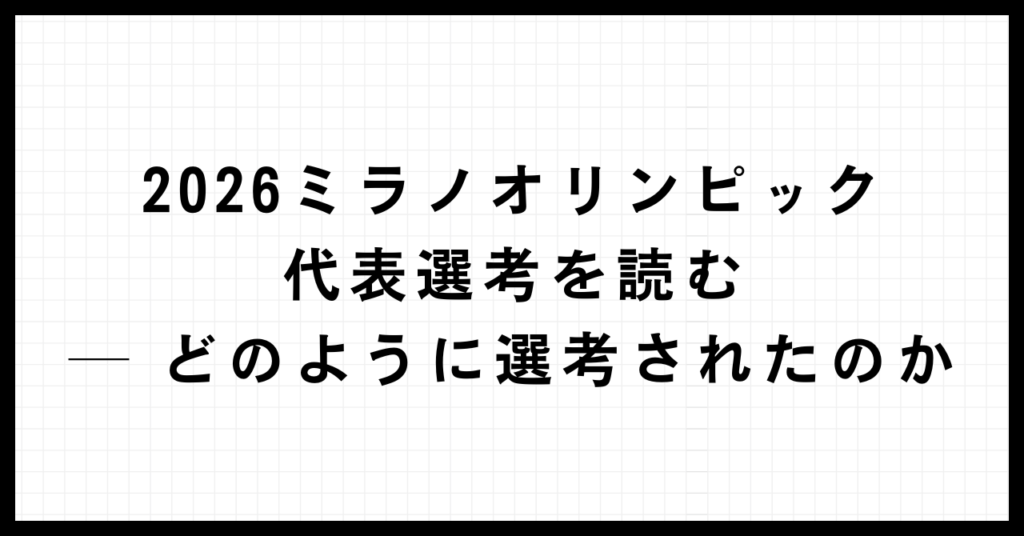 2026ミラノオリンピック代表選考を読む─ どのように選考されたのか