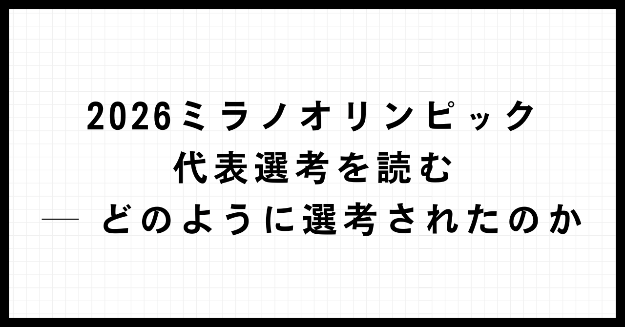 これらを考えれば、今回のミラノオリンピック代表選考はさほど意見が割れることなく、多くの人にとって順当と思われる選考結果になったのではないかと思います。